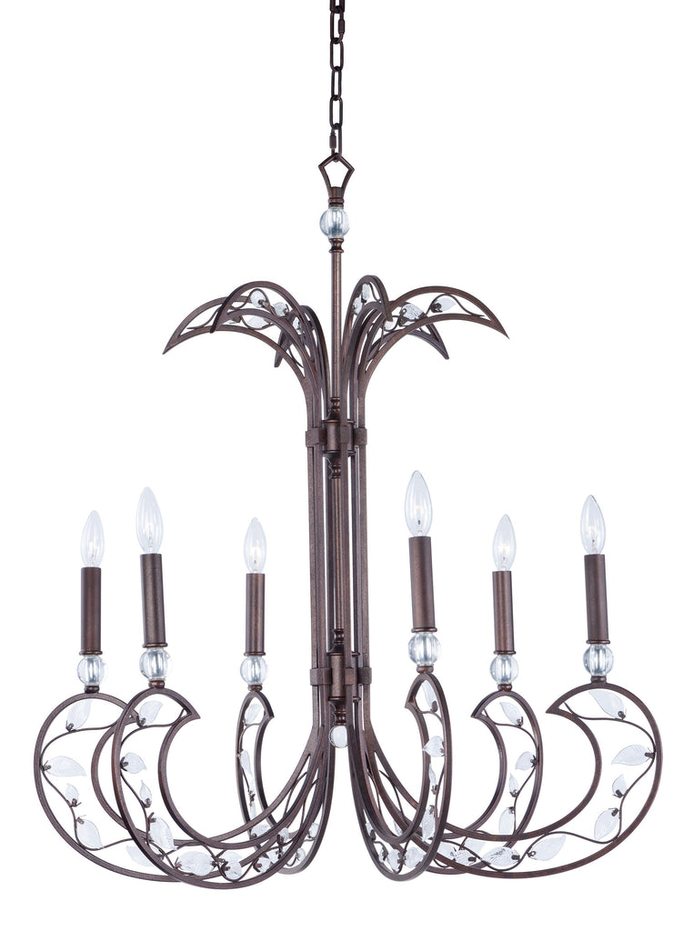 This collection features arms of petite square tubing formed in a unique shape that frames a graceful vine of metal and glass leaves. Finished in our rich Russet that contrasts beautifully with the Clear glass accents. Excellent craftsmanship and attention to detail make this collection a proud addition to any home