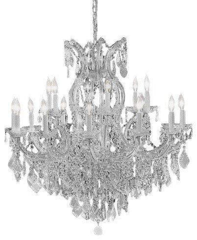 Set of 2 - This beautiful Chandelier is trimmed with Empress Crystal(TM) This beautiful Chandelier is trimmed with Empress Crystal (TM) Maria Theresa 100% Crystal Chandelier. A great European Tradition. Nothing is quite as elegant as the fine crystal chandeliers that gave sparkle to brilliant evenings at palaces and manor houses across Europe. This two-tier version from the Maria Theresa collection is decorated with 100% crystal that capture and reflect the light of the candle bulbs, each resting in a scalloped bobache. The timeless elegance of these chandeliers is sure to lend a special atmosphere in every home.Assembly Required 16 LIGHTS Finish: Silver.